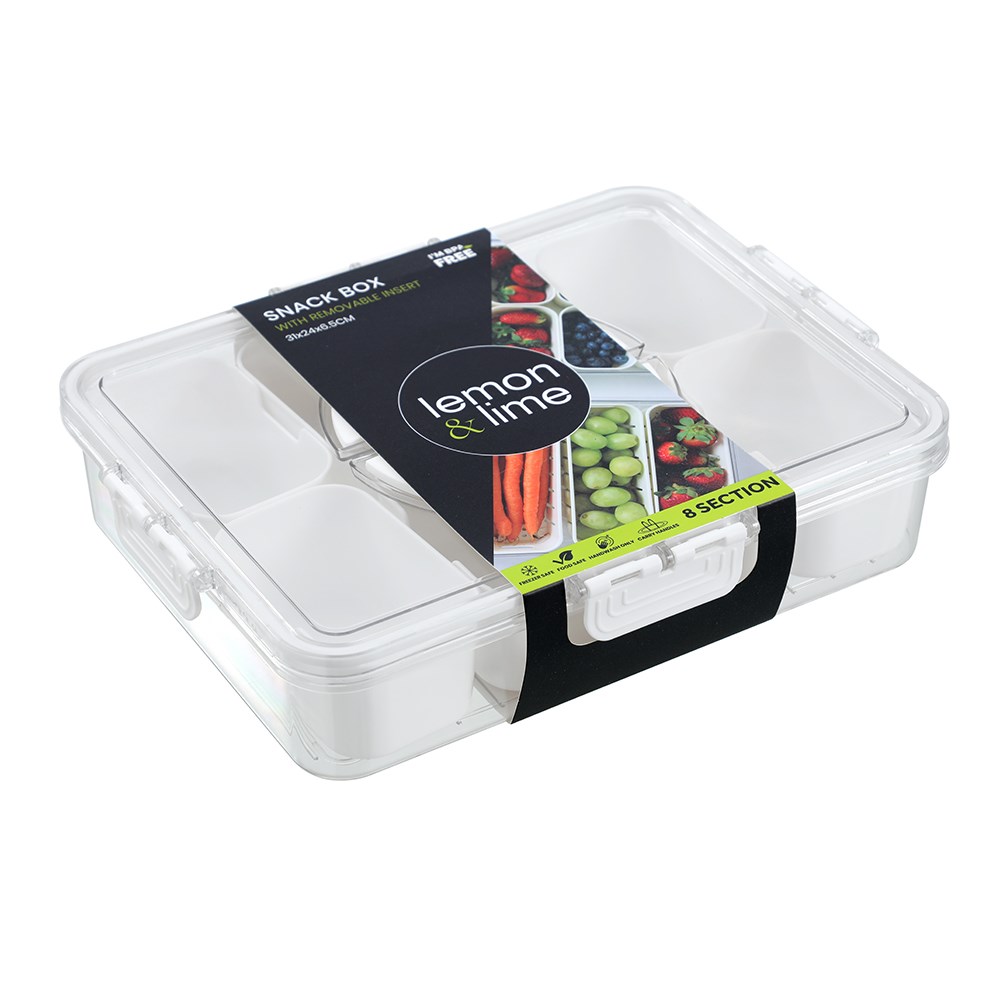 Our Lemon & Lime Snackal Box 8 Section Container keeps your snacks neatly organised with four perfectly sized compartments for effortless portioning. Its secure, snap tight lid prevents spills, making it ideal for on the go snacking at work, school, or travel. Durable and lightweight, it’s the ultimate grab and go solution for keeping your favourites fresh and separated.