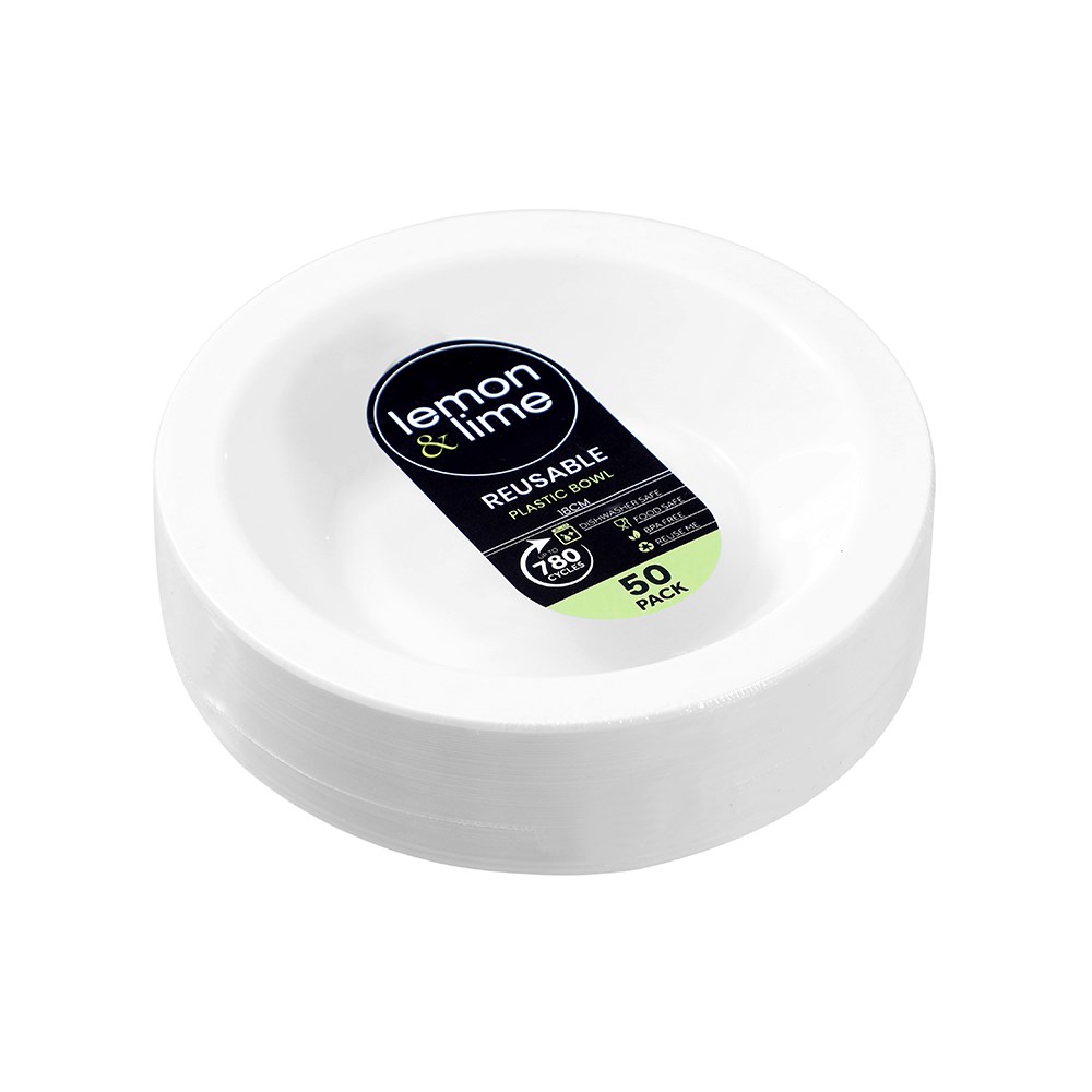 REUSABLE PLASTIC SERVING BOWL 18CM VALUE 50PK
