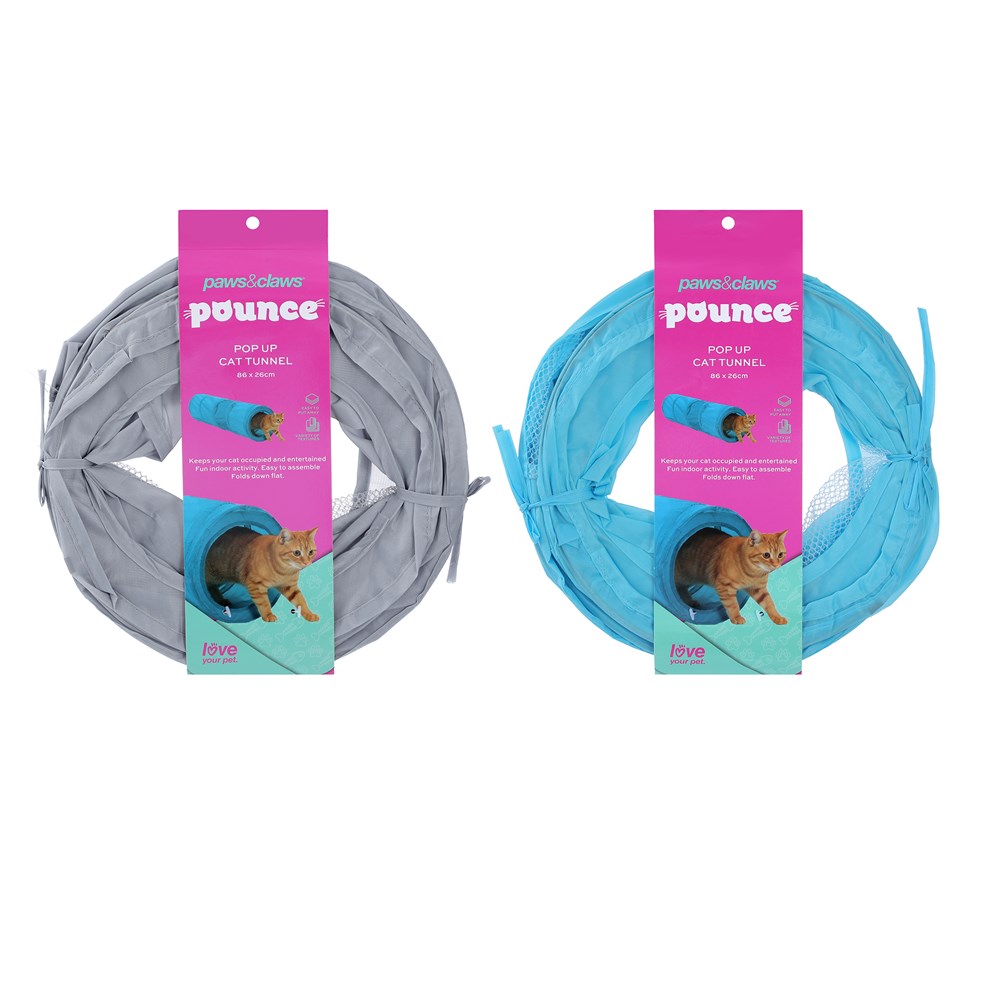 POUNCE COLLAPSIBLE CAT TUNNEL 86X26.5CM 2 ASSTD