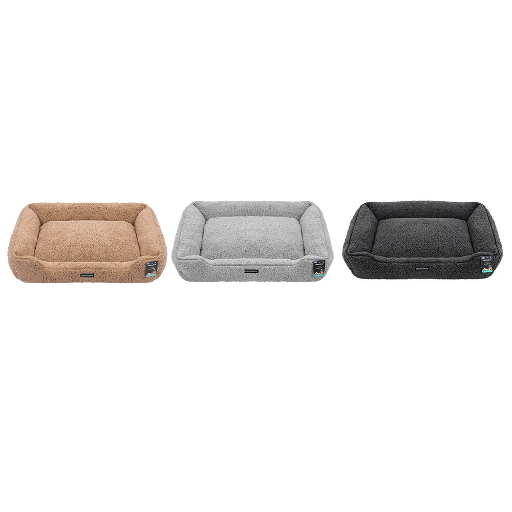 SHERPA WALLED PET BED LGE 90X70X21CM 3 ASSTD LT GREY, CAMEL, CHARCOAL
