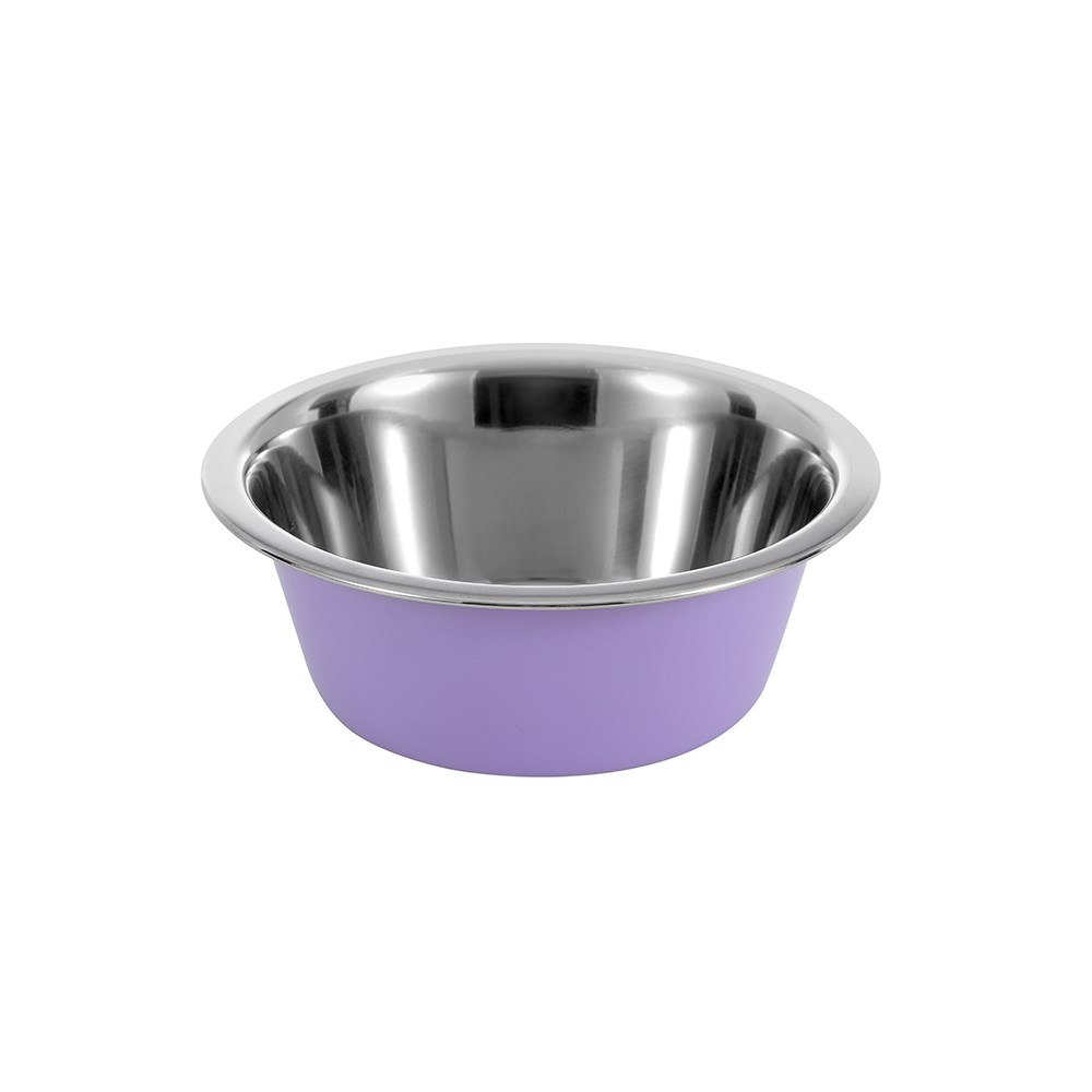 STAINLESS STEEL PET BOWL ANTI-SKID 600ML 3 ASSTD COLS 16.5X16.5X6CM