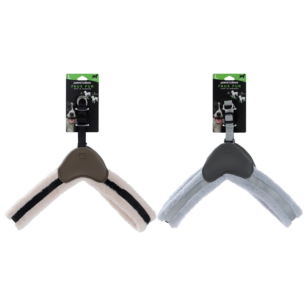 Step out in style with our Paws & Claws Faux Fur & Leather Harness. Designed with a convenient step in style for quick and easy fitting, this harness offers both comfort and control for your pet. Fully adjustable for a secure fit – it’s perfect for pets who love to walk in comfort and confidence!