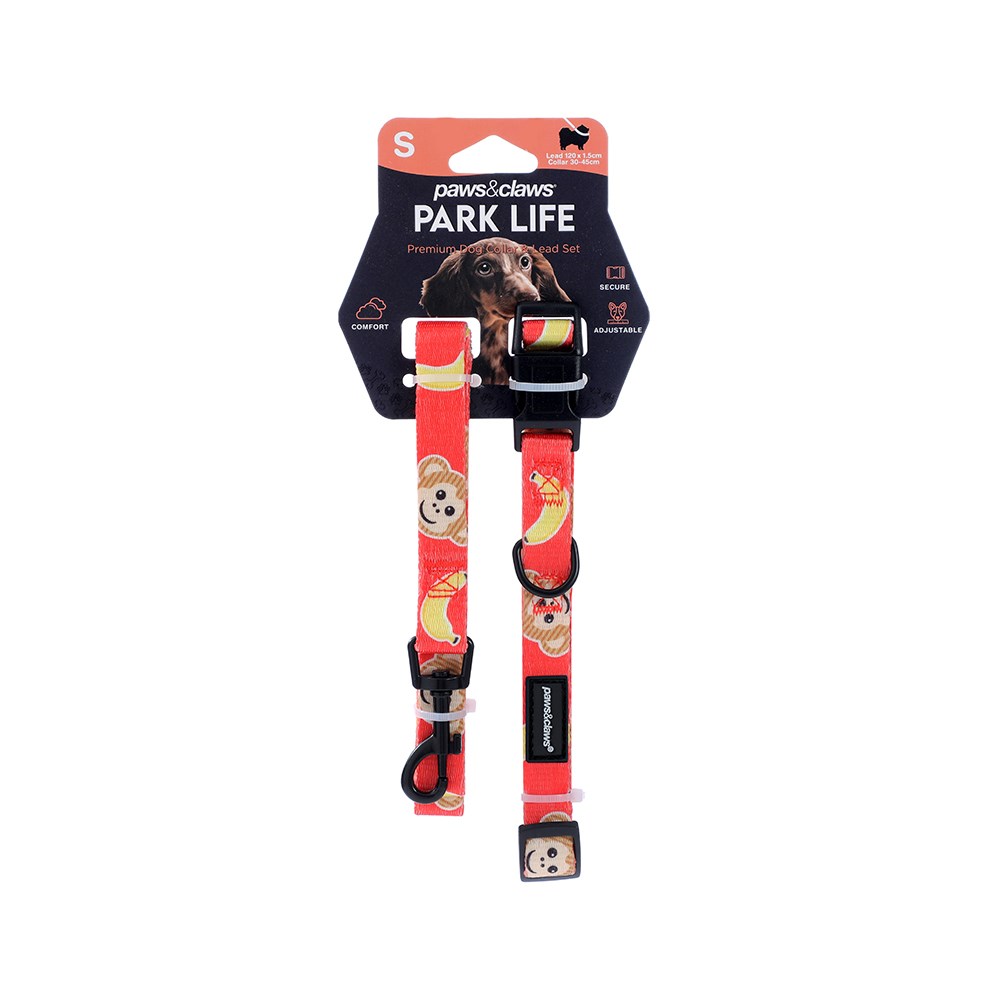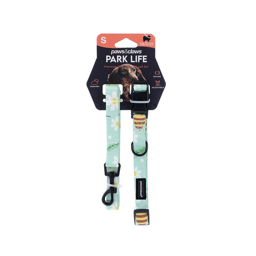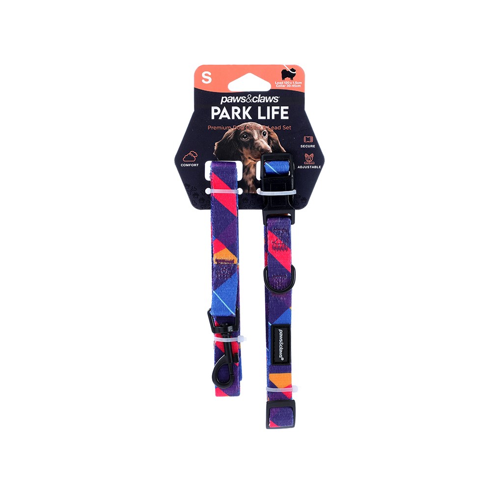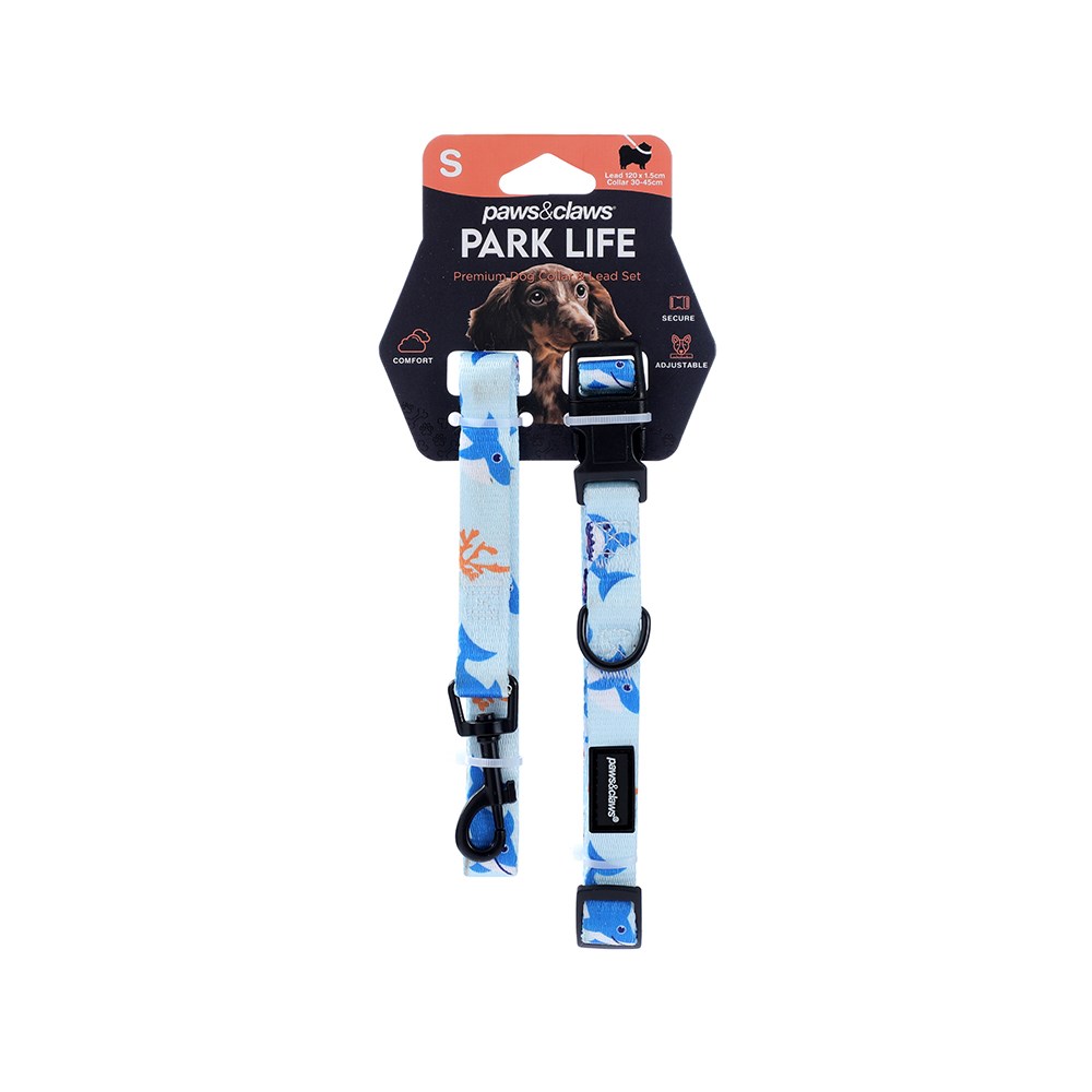 PARK LIFE 4 COLLAR + LEAD SET SML 4 ASSTD DESIGNS 120X1.5CM LEASH 30-45CM COLLAR