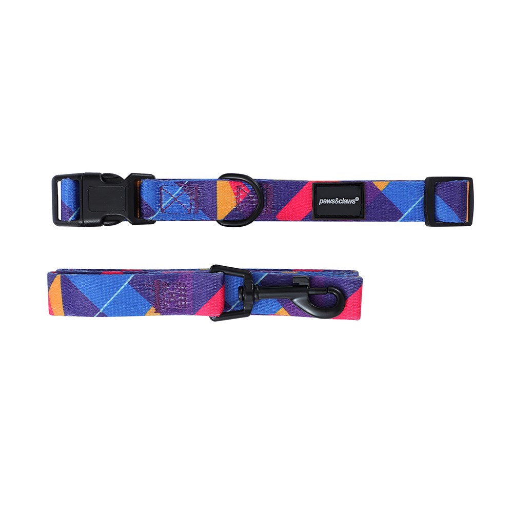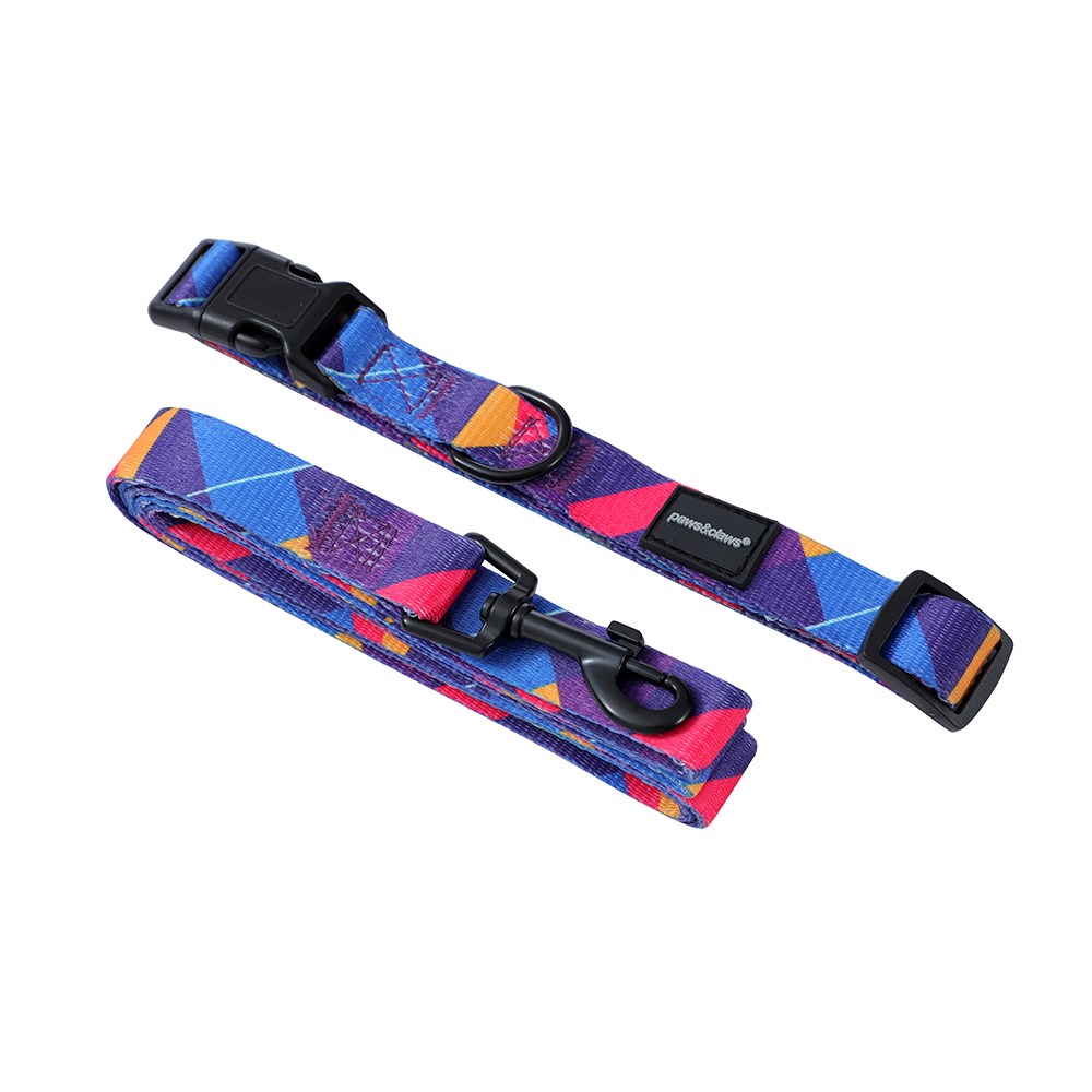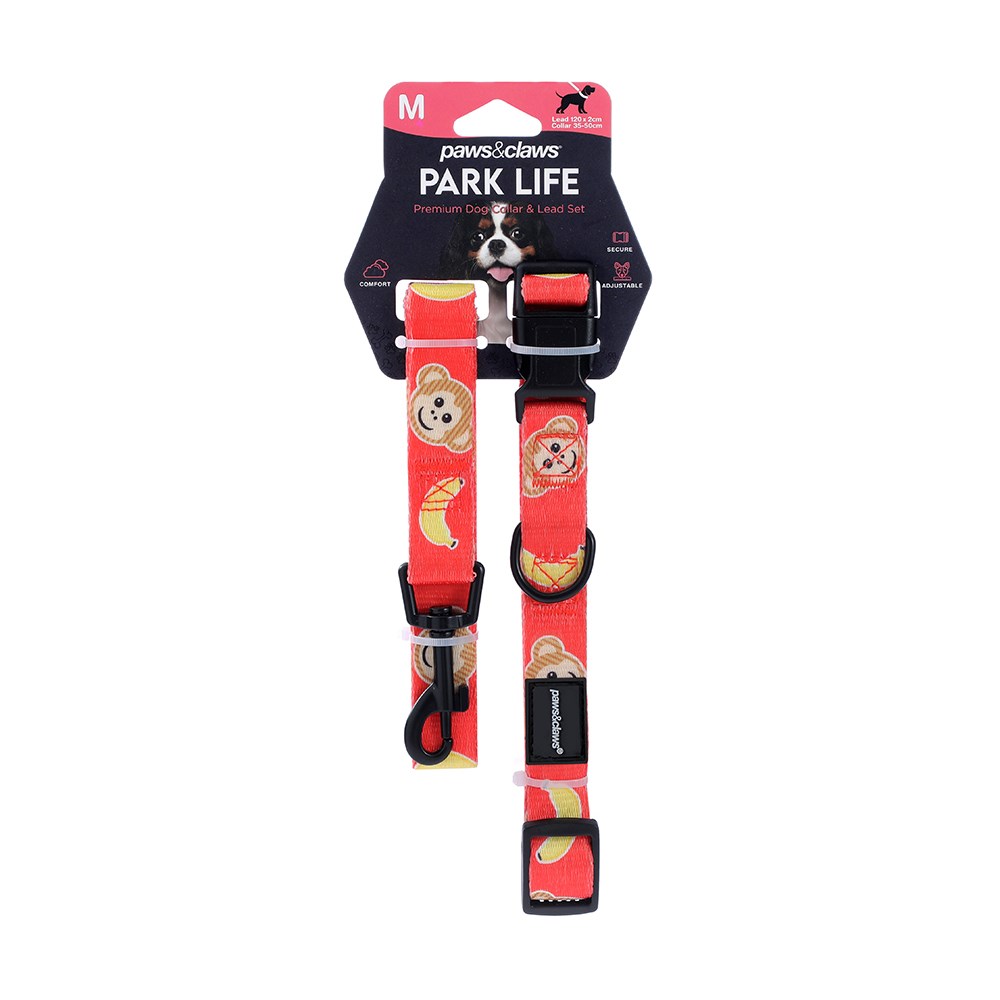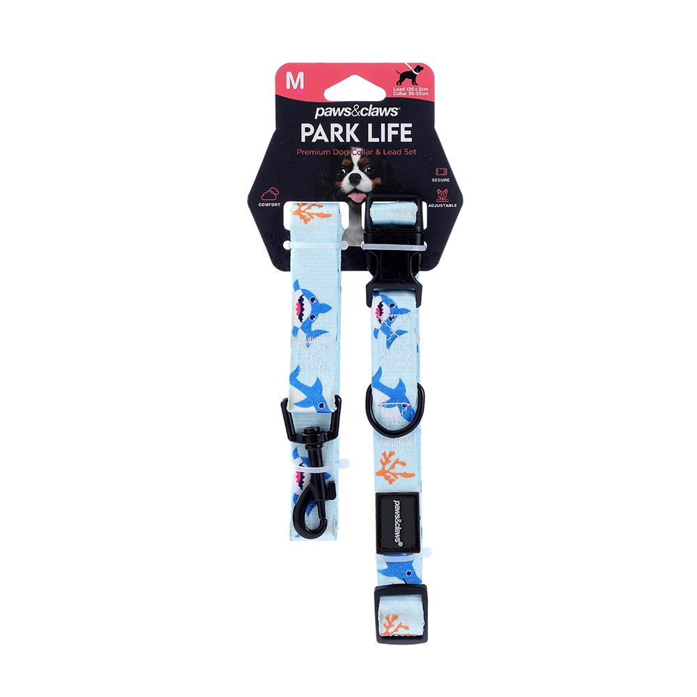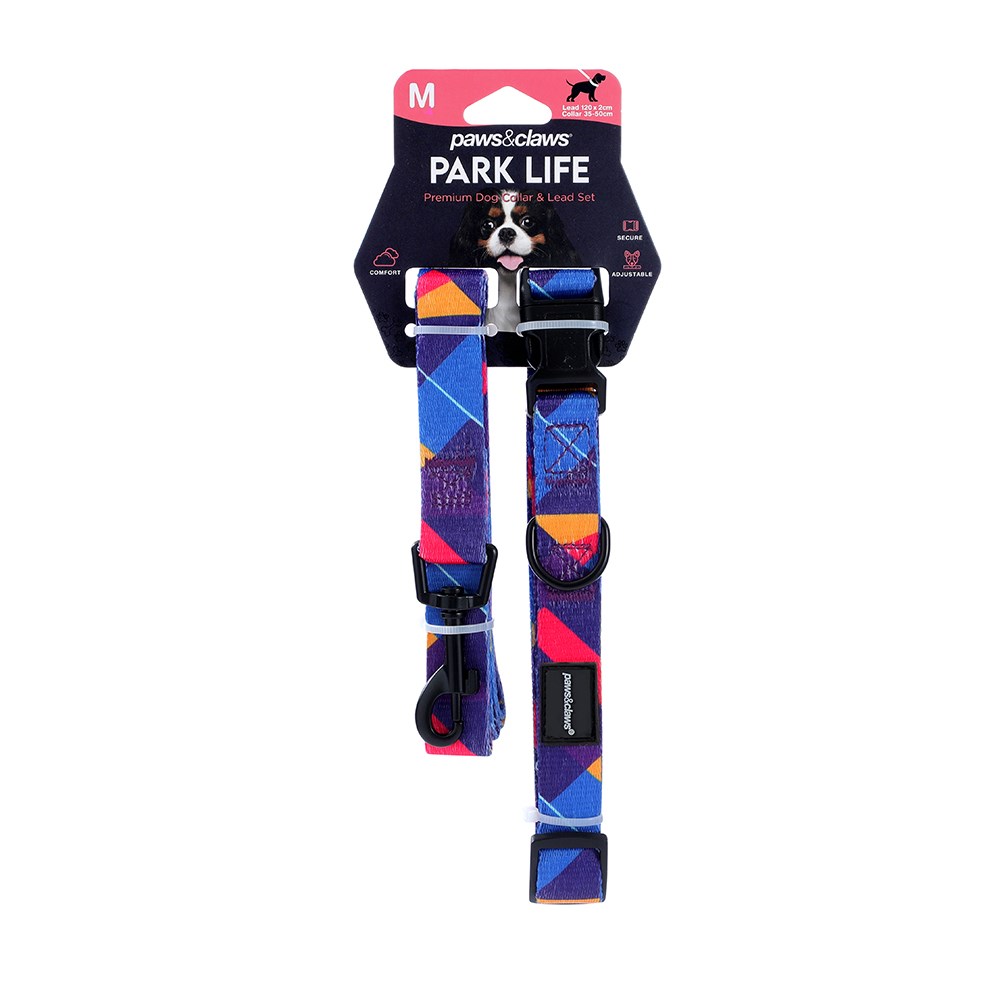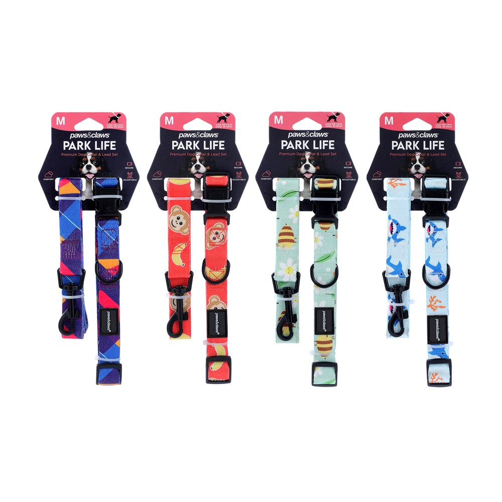 PARK LIFE 4 COLLAR + LEAD SET MED 4 ASSTD DESIGNS 120X2CM LEAD/35-50CM COLLAR