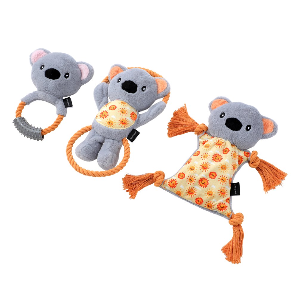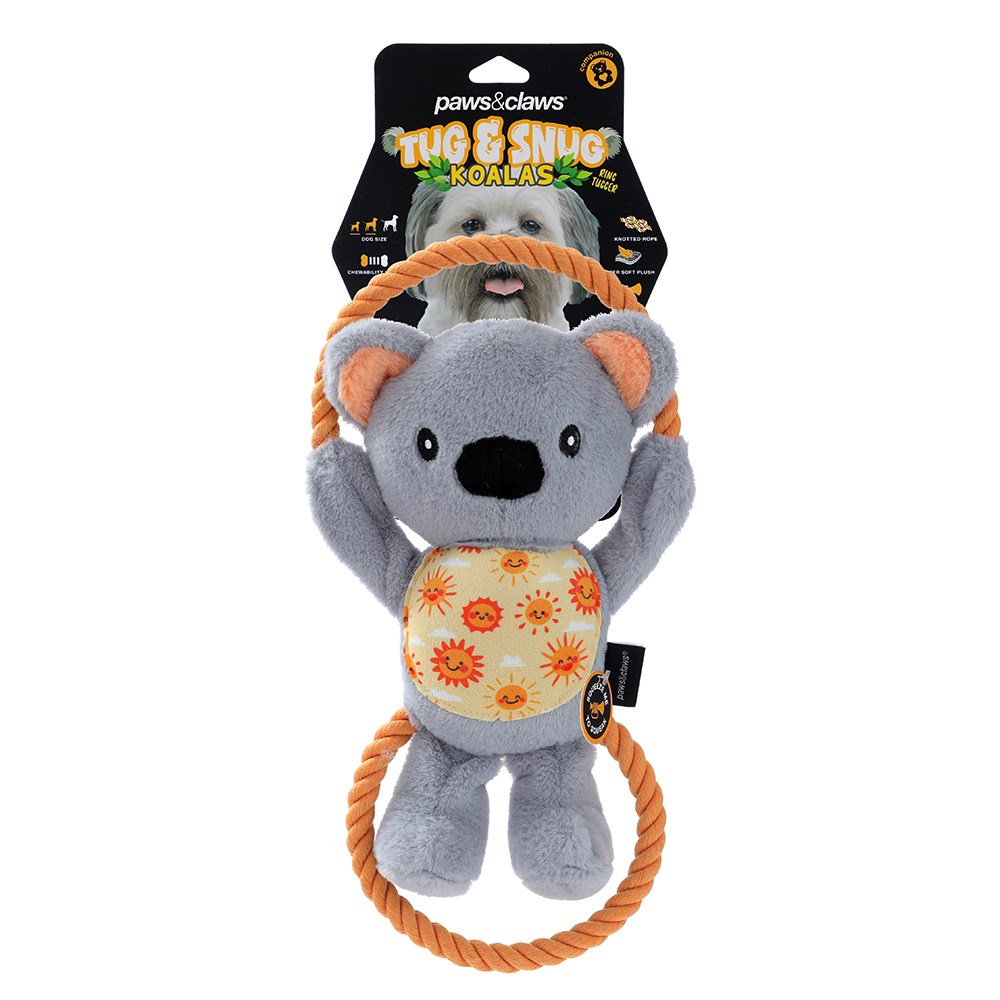 Our Paws & Claws Plush Koala Double Rope Tugger Dog Toy features an adorable koala plush paired with two durable rope ends for exciting tug of war play. Its sturdy construction supports active chewing and interactive fun while remaining soft and gentle on your dog’s mouth.