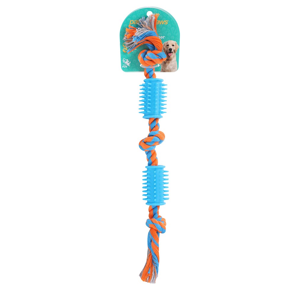 Give your pup hours of fun with our Paws & Claws Rope + Spikey Rubber Tug Toy, available in 3 assorted designs. Built with tough rope and a textured spikey rubber center, it's perfect for tugging, chewing, and helping clean teeth. Ideal for interactive play and promoting healthy gums!