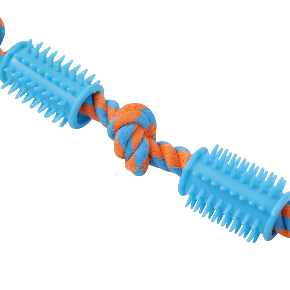 ROPE + SPIKEY RUBBER TUG TOY 40X4X1.6CM 3 ASSTD DESIGNS