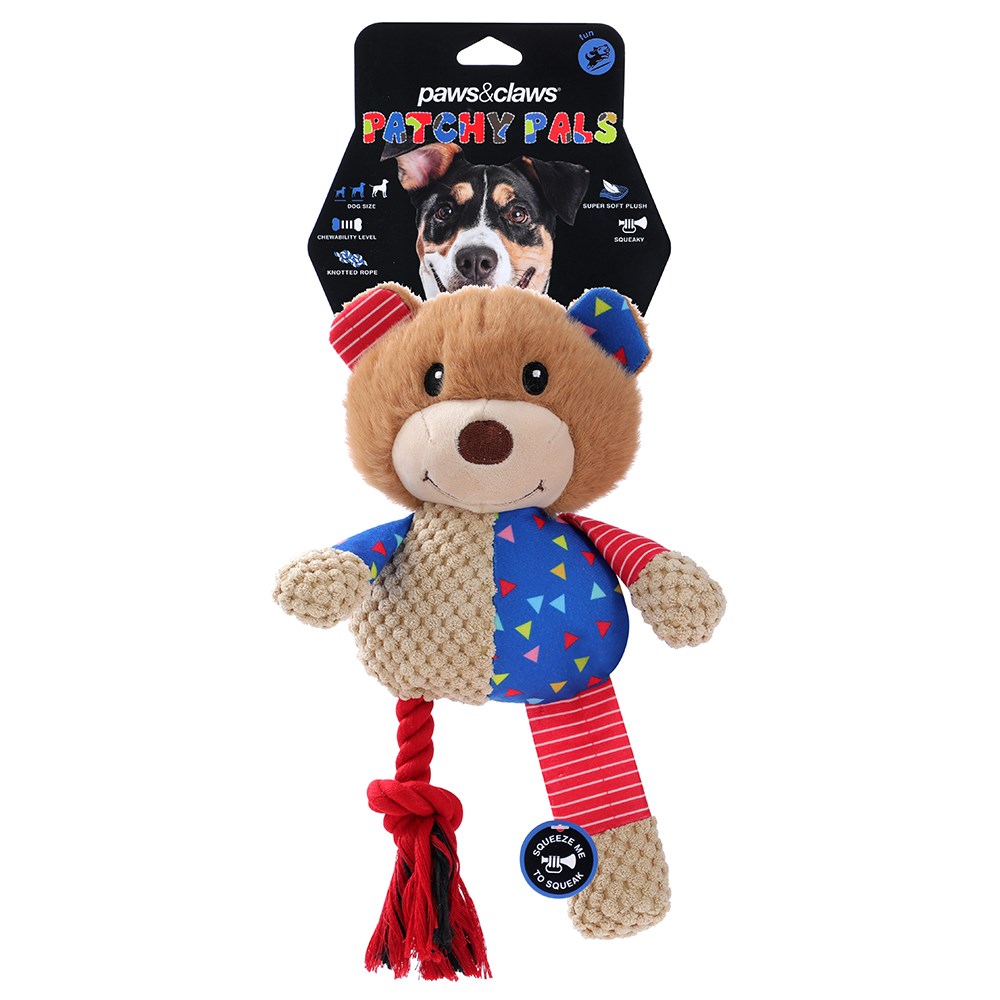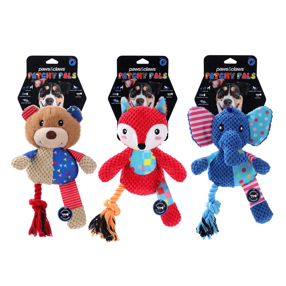 Our Paws & Claws Patchwork Plush Animals  features three charming, multi textured plush toys crafted with soft fabrics and eye catching patterns. Each unique animal offers gentle play and cuddly comfort, making them perfect for snuggling or light interactive fun. A delightful trio that adds colour and character to any pet’s toy collection.