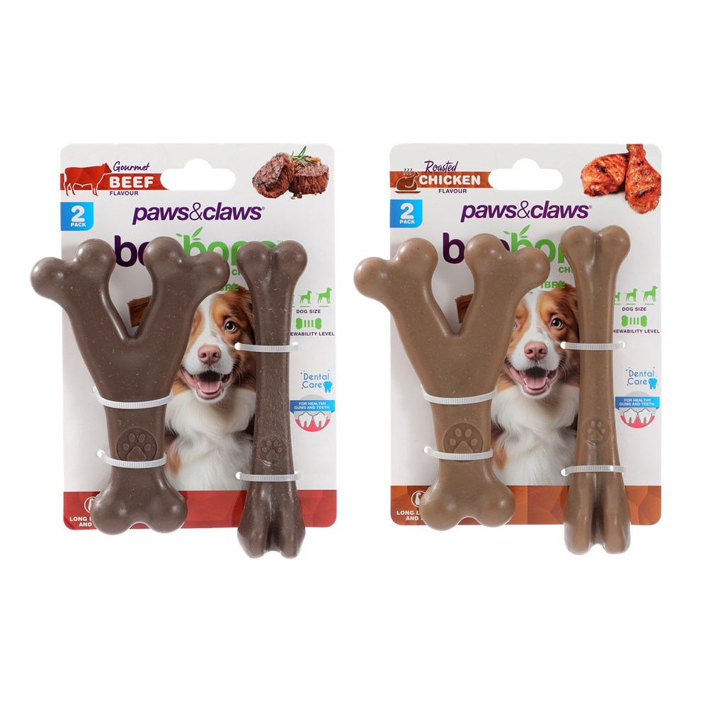 BOOBONE WISHBONE & BONE 2PK SML CHICKEN & BEEF FLAVOUR 14.5X3.5X3.5CM/13X8.5X2CM