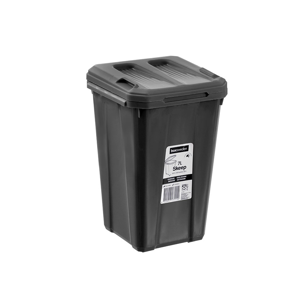 Clean up with our Boxsweden Skeep Wheelie Bin 7L offers a compact yet durable waste solution, designed for easy mobility with smooth rolling wheels and a sturdy lid. Its sleek, space saving design makes it perfect for both indoor and outdoor use.